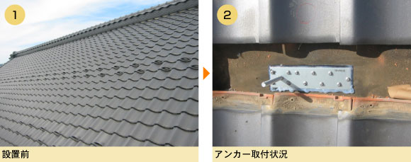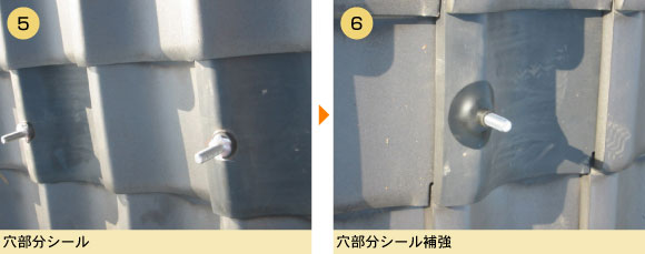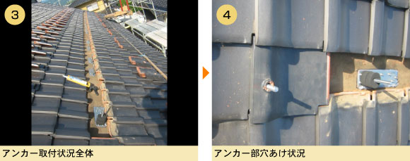 アンカー工法は平板瓦、和瓦ととわず、穴をあけるので(写真4参照)